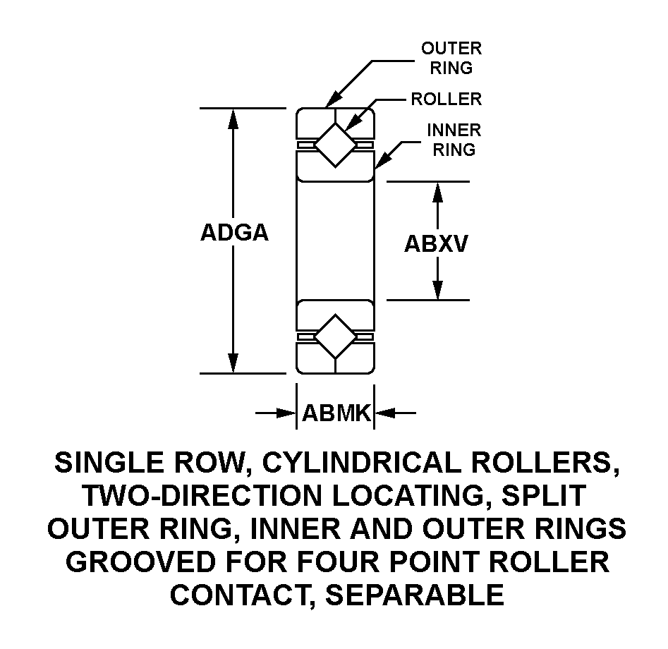 SINGLE ROW, CYLINDRICAL ROLLERS, TWO-DIRECTION LOCATING, SPLIT OUTER RING, INNER AND OUTER RINGS GROOVED FOR FOUR POINT ROLLER CONTACT, SEPARABLE