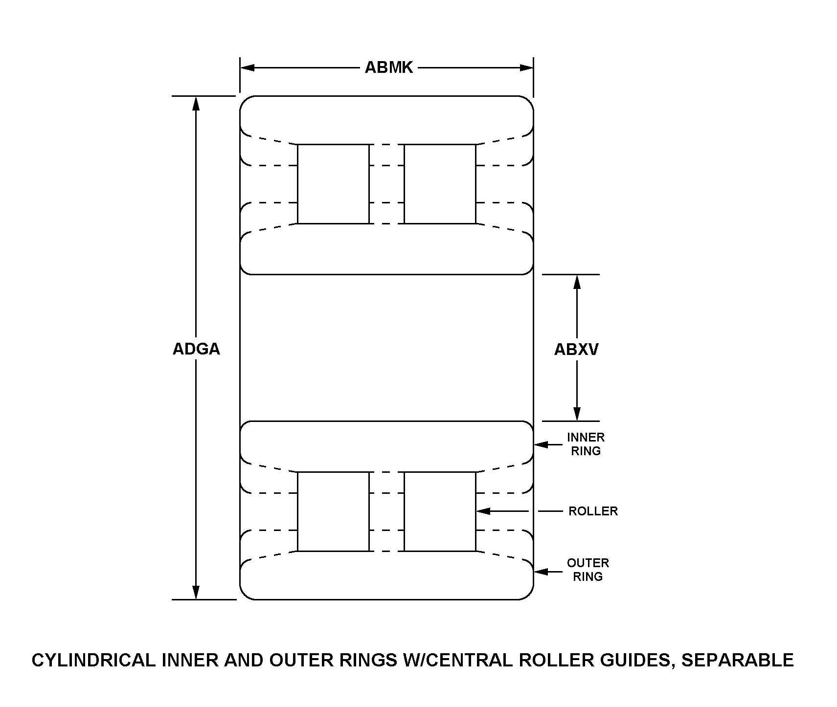 | STYLE DESIGNATOR | CYLINDRICAL INNER AND OUTER RINGS W/CENTRAL ROLLER GUIDES, SEPARABLE |