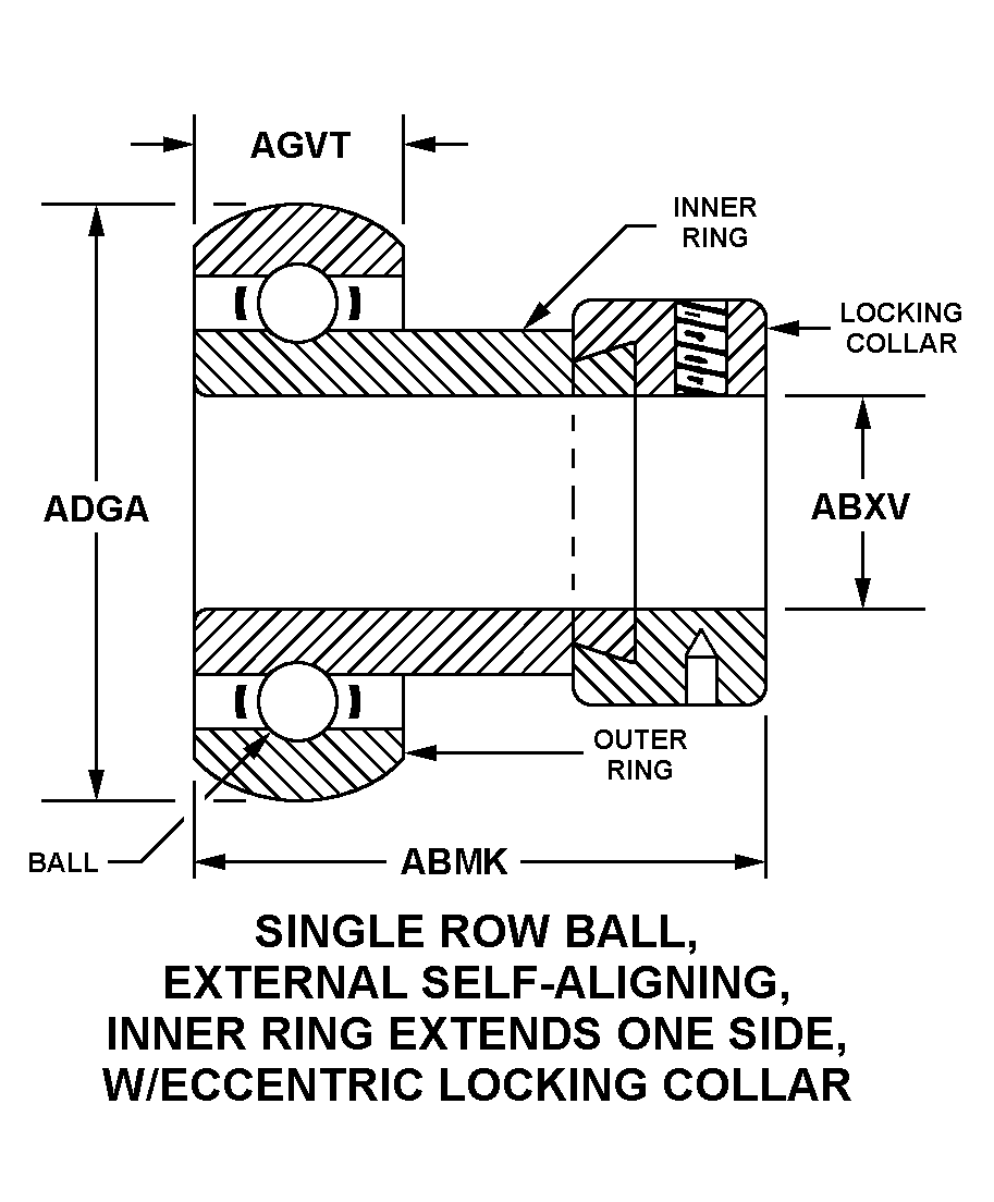 SINGLE ROW BALL EXTERNAL SELF-ALIGNING, INNER RING EXTENDS ONE SIDE, WITH ECCENTRIC LOCKING COLLAR