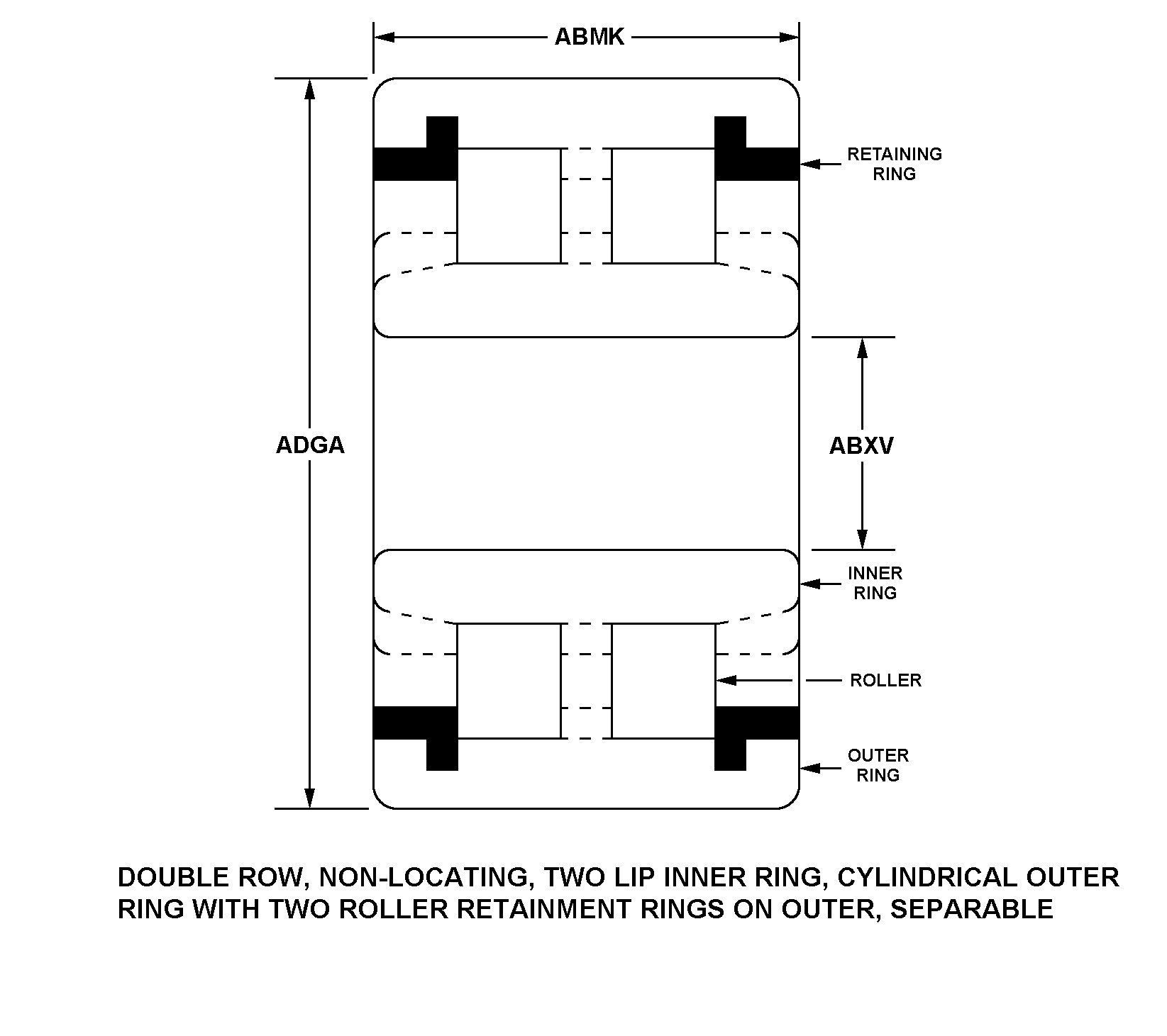 DOUBLE ROW, NON-LOCATING, TWO LIP INNER RING, CYLINDRICAL OUTER RING WITH TWO ROLLER RETAINMENT RINGS ON OUTER, SEPARABLE