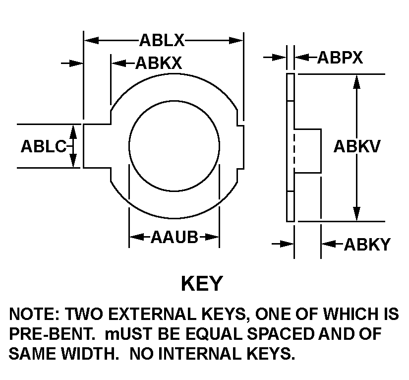 | EXTERNAL PREBENT KEY LENGTH | 0.210 INCHES NOMINAL |
