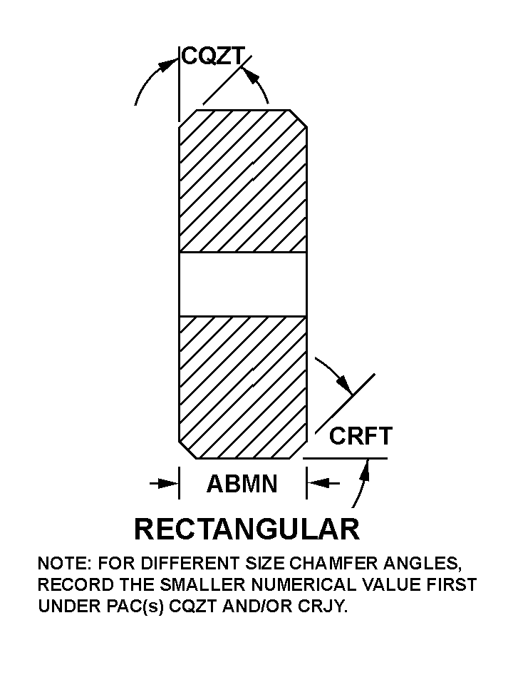 | INSIDE RIGHT CORNER CHAMFER ANGLE | 45.0 DEGREES NOMINAL |
