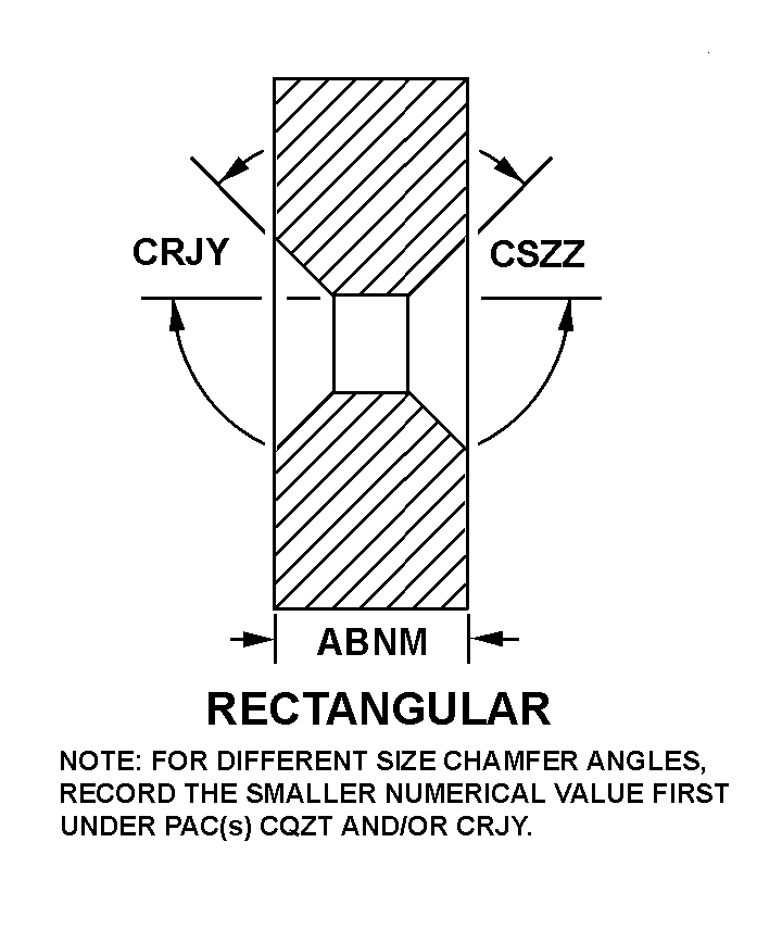 | OUTSIDE RIGHT CORNER CHAMFER ANGLE | 45.0 DEGREES NOMINAL |