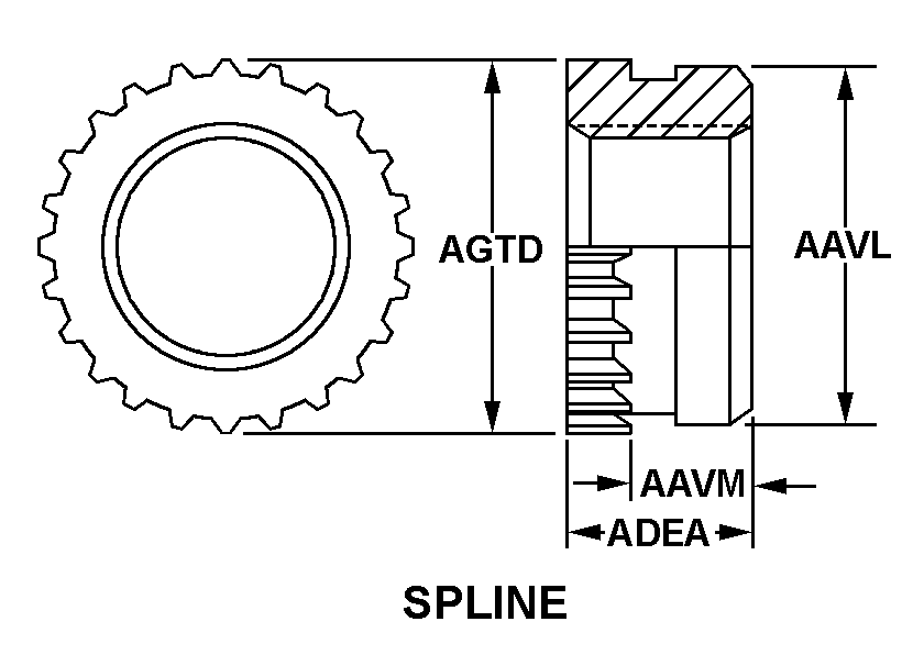 5310-00-109-9006 A nut having an externally splined sleeve, which holds it in position when forced into a hole of slightly smaller diameter. An integral feature is incorporated for locking.
