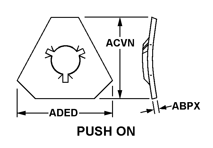 5310-00-115-0143 An item formed from sheet spring material into varying flat, concave, curved, or nutlike design. It has an aperture with an elliptical-shaped hole or suitable lugs or prongs designed to retain threaded or unthreaded stud like projecting memebers. When pushed on, it grips by imbedding into the material of the projecting memebers, and does not mate with a thread helix. See also RING, RETAINING.