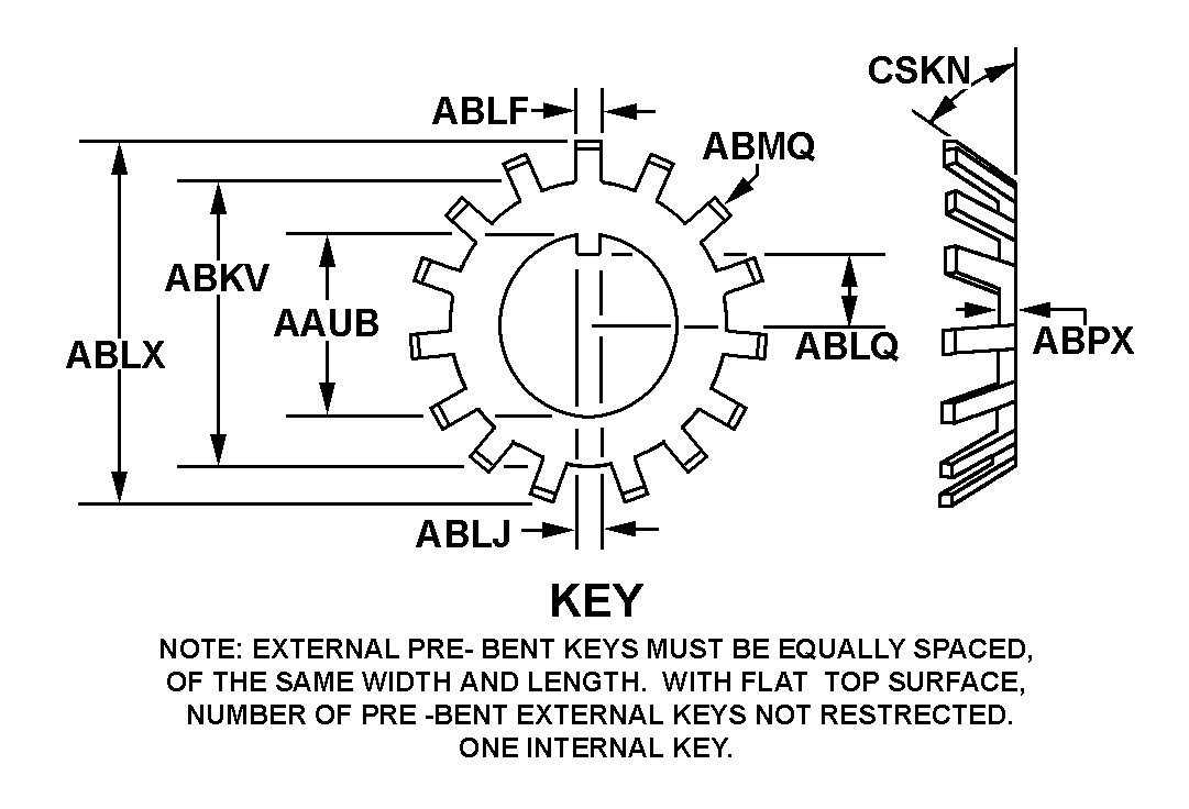 | EXTERNAL PREBENT KEY WIDTH | 0.240 INCHES MINIMUM AND 0.280 INCHES MAXIMUM |