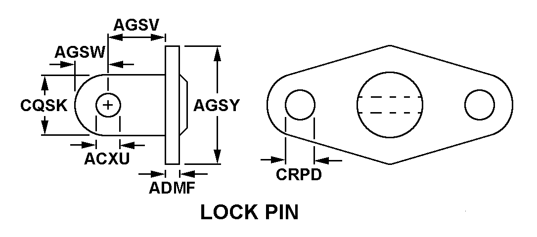 5325-00-624-0528 A metallic postlike fastening device, having a body on one end which is usually round in cross section, and a hole drilled perpendicular to the axis for insertion of a lock pin to securely fasten inspection covers, plates, cowling, or the like. The opposite end has mounting facilities in the form of a flange, plain shank, or threaded shank. May include a grommet.